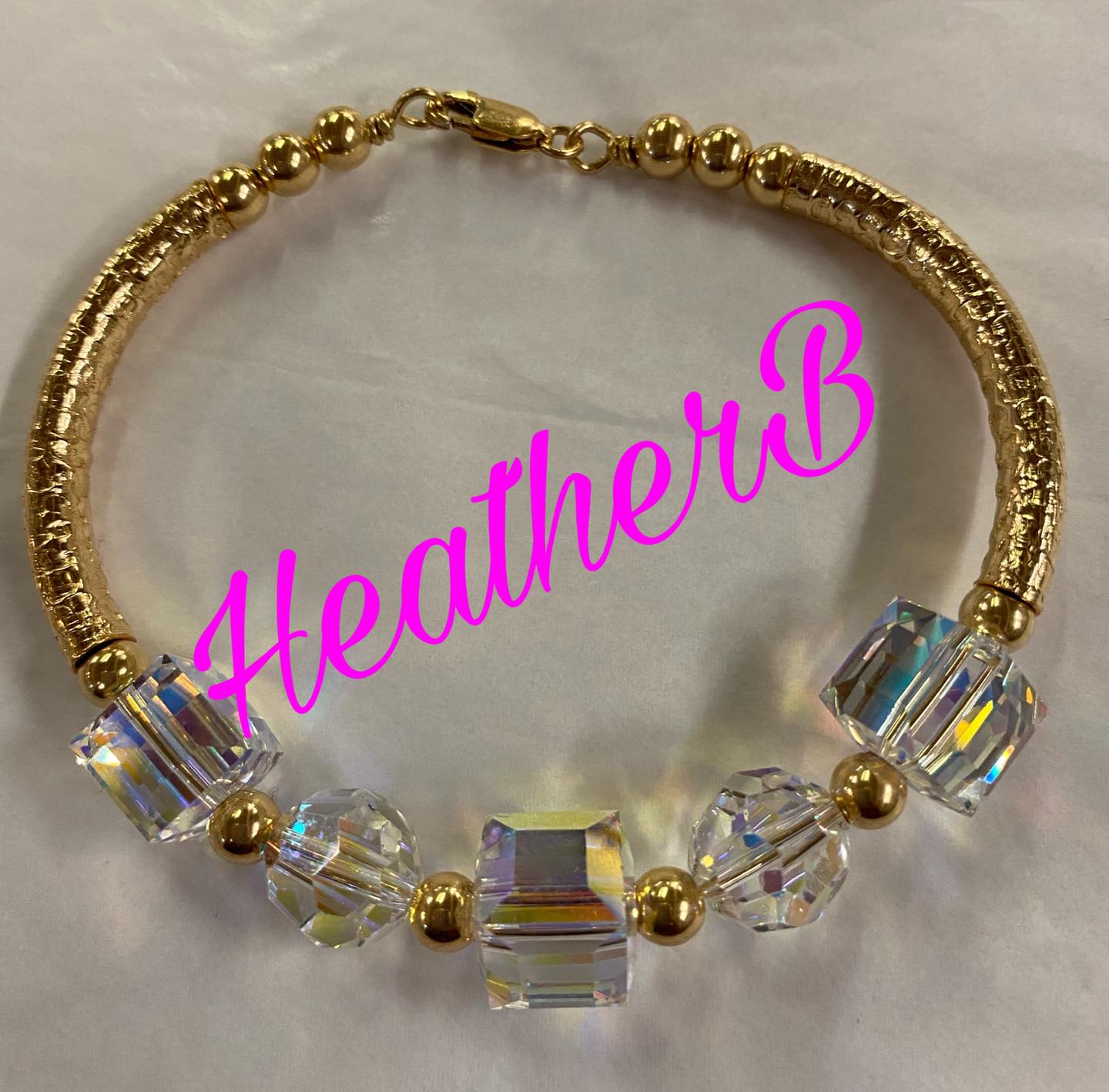 14kt gold filled custom handmade for every day or occasional wear. This bangle is adorned with Swarovski 8mm Cube and Round beads to bring out the beauty of the bangle. Lobster clasps is used for closure.
